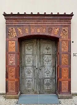 Einzelne Fassadenteile wurden für eine spätere Wiedererrichtung an anderer Stelle geborgen und auf dem Gelände Französische Straße/Ecke Kurstraße eingelagert.[24] Das linke Bronzeportal und mehrere Terrakottareliefs von beiden Portalen wurden 1969 in die Fassade der Gaststätte Schinkelklause am Kronprinzenpalais eingebaut.[25] Das rechte Bronzeportal wurde 1999 wiedergefunden und ins Depot des Landesdenkmalamts verbracht. Außerdem existieren insgesamt elf Kopien der Terrakottaplatten, die sich in der Toreinfahrt des Jugendkulturzentrums Mitte in der Weinmeisterstraße 15 befinden.[26] Die bestehenden Fundament- und Mauerteile sind als Bodendenkmal erfasst und nach Feststellung des Landesdenkmalamtes Berlin in gutem Zustand.[27]