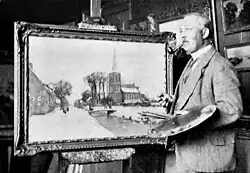 Auch verewigte er alte Stadtviertel. — In den 1920er-Jahren entdeckte er das helle, lichte Dorfgesicht. — Hier folgte der hellen Farbpalette eines Jan Vermeer und Gerrit Adriaenszoon Berckheyde.