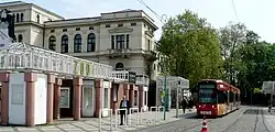 Der Zoologische Garten zog 1874 auf die Pfingstweide, das Zoo-Gesellschaftshaus entstand 1876.[24] Seitdem bildet die Einfriedung des Zoo-Areals die nördliche bzw. nordöstliche Begrenzung der heutigen Bernhard-Grzimek-Allee. Pfingstweide und später Zoo haben dazu beigetragen, dass die Straße auf dieser Seite nahezu gänzlich unbebaut blieb, wenn man von den kleinen Tier-Unterkünften direkt hinter der Zoo-Umfriedung absieht.