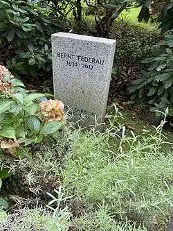 Bernt Federau verstarb 87-jährig in Hamburg und wurde auf dem dortigen Friedhof Ohlsdorf beigesetzt. Die Grabstätte befindet sich im Planquadrat PA 2 oberhalb des Prökelmoorteichs.