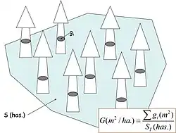 Die Grundfläche ist ein Maß für die Dichte des Bestandes und eignet sich besser als z. B. die Stammzahl bei der Entscheidung der Stärke der Durchforstung. Sie kann durch eine Vollaufnahme oder stichprobenartig mit Hilfe der Winkelzählprobe ermittelt werden.