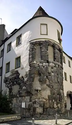 - 10. Jahrhundert: Unter dem bayerischen Herzog Arnulf I. erfolgte die Stadterweiterung nach Westen: Abbruch der westlichen Mauer des Römerlagers und Bau der Arnulfinischen Stadtmauer unter Einbezug von Kloster Sankt Emmeram.