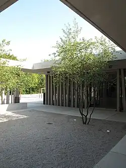 Das Besuchergebäude der KZ-Gedenkstätte Dachau wurde nach einem Architektenwettbewerb von Florian Nagler zusammen mit Gartenarchitekt Peter Latz realisiert.[2] Bauherr war die Stiftung Bayerische Gedenkstätten München.