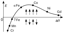 Bei der Diskussion des magnetischen Verhaltens der Übergangsmetalle hat sich die Bethe-Slater-Kurve bewährt, auch wenn die tieferen theoretischen Gegebenheiten bisher nur unzureichend verstanden sind. Alle Metalle mit positivem sind ferromagnetisch (zum Beispiel Eisen, Cobalt, Nickel, Gadolinium), die mit negativem sind antiferromagnetisch oder paramagnetisch.