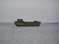 - Der Betonrumpf der Ulrich Finsterwalder liegt nach einer wechselvollen Geschichte seit Ende der 1970er Jahre auf einer Sandbank am Nordende des Dammschen Sees, in der Oder-Mündung (Lage).