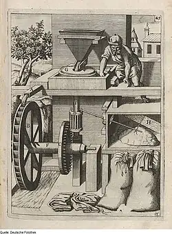 9. Helmut Düntzsch, Rudolf Tschiersch, Eberhard Wächtler, Otfried Wagenbreth: Mühlen. Geschichte der Getreidemühlen. 1. Auflage, Deutscher Verlag für Grundstoffindustrie, Leipzig 1994, ISBN 3-342-00672-2, Quellenverzeichnis und weiterführende Literatur. Literatur zu Abschnitt 6.1. Originalliteratur Maschinenkunde mit Mühlen bis 1800, S. 402.