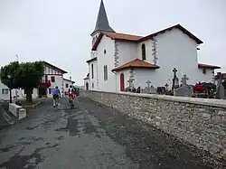 - Das Pfarrhaus ist wahrscheinlich bereits im 16. Jahrhundert errichtet worden. Es ist ein authentisches Haus aus Navarra mit den traditionell verwendeten Ochsenblutfarben. Die Fassade ist verziert mit einer mit einem Kreuz gekrönten Nische, in der sich eine Christusstatue befindet, von dem der Betrachter den Eindruck gewinnen kann, sie wache über das Haus und über jeden Gast.[13]
