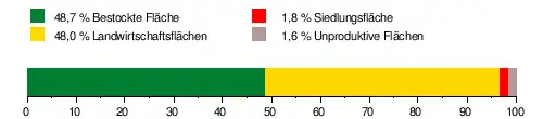 Es besteht zu 48,7 % aus bestockter Fläche, zu 48,0 % aus Landwirtschaftsfläche, zu 1,8 % aus Siedlungsfläche und zu 1,6 % aus unproduktiven Flächen.