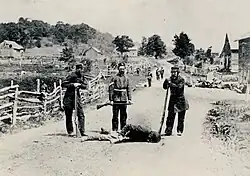 Eine Reihe von Nachkriegsabkommen stabilisierte die Beziehungen entlang der kanadisch-amerikanischen Grenze weiter. Kanada reduzierte die amerikanische Einwanderung aus Angst vor zu großem amerikanischen Einfluss und baute die Anglikanische Kirche von Kanada als Gegengewicht zu den überwiegend amerikanischen Methodisten- und Baptistenkirchen auf.[4] Die Demokratie, wie sie in den USA praktiziert wird, wurde ins Lächerliche gezogen und die pro-demokratischen Rebellionen von 1837 in Niederkanada und Oberkanada wurden niedergeschlagen. Die amerikanische Politik ignorierte die Rebellionen weitgehend und Kanada generell zugunsten der Expansion der amerikanischen Grenze nach Westen. 1842 wurde das Webster-Ashburton-Treaty abgeschlossen, welches den Grenzverlauf von Maine festlegte und den Aroostook-Krieg zwischen den Vereinigten Staaten und der britischen Kolonie New Brunswick beendete. Nach dem Schweinekonflikt von 1859 trat Kanada die San Juan Islands an die USA ab. Während des Sezessionskriegs (1861–1865) in den Vereinigten Staaten blieben die Briten offiziell neutral. Etwa 40.000 Kanadier meldeten sich freiwillig für die Unionsarmee und einige wenige für die Konföderiertenarmee.[5] Vor dem Krieg waren viele entlaufene Sklaven über die Underground Railroad nach Kanada geflüchtet. Aber Kanada wurde trotz der Neutralität auch von den Konföderierten als Basis für Angriffe auf die Nordstaaten genutzt, wie bei dem St.-Albans-Vorfall. Dort töteten Soldaten der Konföderierten einen amerikanischen Staatsbürger, raubten drei Banken aus und erbeuteten mehr als 200.000 US-Dollar. Anschließend flüchteten sie nach Kanada, wo sie verhaftet, dann aber von einem kanadischen Gericht zum Ärger der Amerikaner freigelassen wurden.[6]