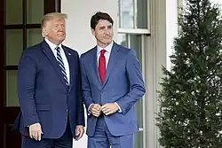 Unter Barack Obama waren die Beziehungen zu Kanada hervorragend, während sie ab 2016 unter Donald Trump angespannt waren. Trump begann einen Handelskonflikt mit Kanada und bezichtigte den kanadischen Premier Justin Trudeau öffentlich der Lüge und bezeichnete ihn als „unehrlich“ und „schwach“.[13] Trumps Berater für Handelsfragen, Peter Navarro, sagte, dass es für Trudeau einen „besonderen Platz in der Hölle“ gebe, da er „böswillige Diplomatie gegenüber Präsident Trump“ betreibe.[14] Nachdem Trump im Jahr 2024 für eine zweite Amtszeit wiedergewählt worden war, kündigte dieser an, Importe aus Kanada mit einem Zollsatz von 25 Prozent zu belegen. Bei einem Treffen mit Trudeau sagte Trump: „Wenn Kanada mit den USA fusionieren würde, gäbe es keine Zölle, die Steuern würden deutlich sinken und sie wären vollständig sicher vor der Bedrohung durch russische und chinesische Schiffe, die sie ständig umgeben“.[15][16] Trudeau erwiderte: „Die Wahrscheinlichkeit, dass Kanada Teil der Vereinigten Staaten wird, ist kleiner als die für einen Schneeball in der Hölle.“[17]