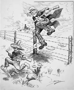 Im Oktober 1909 reiste der US-Präsident William Howard Taft nach Ciudad Juárez, wo er sich mit Porfirio Díaz traf. Das Treffen war historisch, da es der erste ausländische Staatsbesuch eines amtierenden US-Präsidenten und das erste Treffen zwischen den Staatsoberhäuptern der beiden Staaten war. Während des Treffens konnte ein Anschlagsversuch im letzten Moment verhindert werden.[10] Mit dem Sturz von Diaz in der Mexikanischen Revolution unterstützten die USA zuerst dessen Nachfolger Francisco Madero, die Beziehungen verschlechterten sich allerdings bald darauf. Nach der Machtübernahme von Victoriano Huerta in einem Putsch forderten die USA unter Präsident Woodrow Wilson demokratische Wahlen und es kam zum Konflikt. Nachdem Angehörige der US-Marine im Hafen von Tampico von Huertas Soldaten festgenommen worden waren, besetzten die USA 1914 Veracruz für sechs Monate, was den Tod von 160 mexikanischen Soldaten und einer unbekannten Anzahl mexikanischer Zivilisten zur Folge hatte und für antiamerikanische Proteste sorgte.[11] Nachdem Einheiten des mexikanischen Revolutionsführers Pancho Villa die Stadt Columbus in New Mexico überfallen hatten, entsandte Präsident Wilson 1916 eine Strafexpedition unter General John J. Pershing, um Villa zu verhaften. Die Expedition nahm den Rebellen den Nachschub weg, konnte Villa aber nicht festnehmen. Im Januar 1917 sendete das sich im Ersten Weltkrieg befindende Deutsches Reich die Zimmermann-Depesche an Mexiko und bot dem Land ein Militärbündnis zur Rückgewinnung von New Mexico, Kalifornien, Nevada, Arizona und Texas an, welche Mexiko 1848 an die USA verloren hatte. Der britische Geheimdienst fing die Nachricht ab und gab sie an die US-Regierung weiter. Präsident Wilson gab sie an die Presse und verstärkte damit die Forderungen nach einem Eintritt der USA in den Ersten Weltkrieg, welcher kurz darauf erfolgte. Mexiko blieb im Ersten Weltkrieg neutral und lieferte Erdöl an das Vereinigte Königreich.[12] Nach dem Ende der Kriegsphase der mexikanischen Revolution erhoben Amerikaner und Mexikaner Ansprüche für Schäden, die während des jahrzehntelangen Bürgerkriegs entstanden waren. Die Amerikanisch-Mexikanische Anspruchskommission wurde während der Präsidentschaft des Revolutionsgenerals Alvaro Obregón und des US-Präsidenten Calvin Coolidge eingerichtet, um diese Ansprüche zu klären. Obregón war bestrebt, die Probleme mit den USA zu lösen, einschließlich der Frage um die Ausbeutung mexikanischer Erdölvorkommen, um sich die diplomatische Anerkennung der USA zu sichern. Die Verhandlungen führten 1923 zum Bucareli-Vertrag. In den 1920er Jahren vermittelten die USA außerdem unter Botschafter Dwight Morrow im Guerra Cristera, welche zwischen der Regierung und Bauernmilizen, die der katholischen Kirche nahestanden, stattfand.