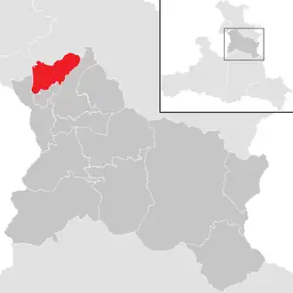 | Gemeinde | Lage | Ew | km² | Ew / km² | Gerichtsbezirk | Region | Typ |