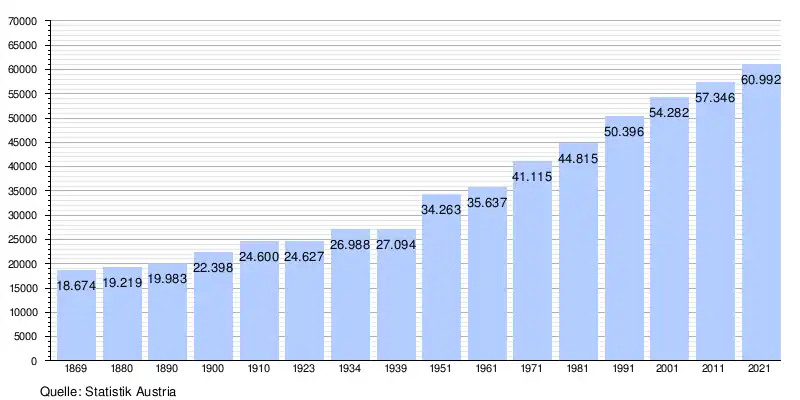 - ↑ Statistik Austria – Bevölkerung zu Jahresbeginn nach administrativen Gebietseinheiten (Bundesländer, NUTS-Regionen, Bezirke, Gemeinden) seit 2002 (ODS)