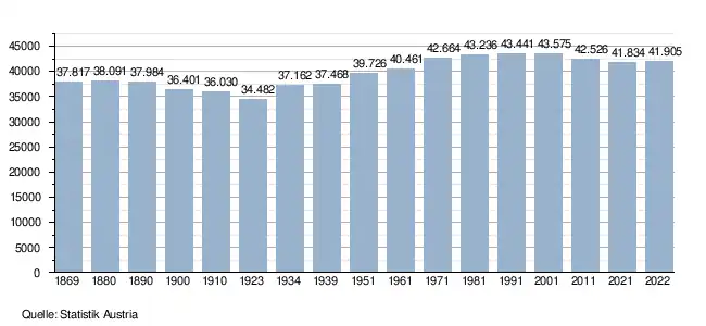 - ↑ Statistik Austria – Bevölkerung zu Jahresbeginn nach administrativen Gebietseinheiten (Bundesländer, NUTS-Regionen, Bezirke, Gemeinden) seit 2002 (ODS)