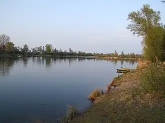 Der Baggersee ist 7 ha groß und maximal 15 Meter tief.[1]
