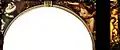 Makarts insgesamt zwölf auf Leinwand und goldenem Hintergrund gemalte Lünettenbilder bestehen aus zehn Gemälden von italienischen, spanischen, deutschen und niederländischen Künstlern des 16. bis 17. Jahrhunderts und deren Modellen bzw. Lieblingsthemen sowie aus zwei personifizierten Darstellungen, den Allegorien der Malerei und Bildhauerei.[3] Obwohl die einzelnen Werke weder in direktem inhaltlichen Zusammenhang stehen noch chronologisch geordnet sind, fällt bei der Positionierung der Bilder auf, dass in der Nord-Süd-Achse die Allegorien der Malerei und Bildhauerei bzw. in der Ost-West-Achse Velázquez und Rembrandt einander gegenübergestellt sind.