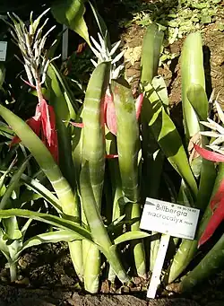 Billbergia pyramidalis(Sims) Lindl. (Syn.: Billbergia pyramidalis var. vernicosaPereira, Billbergia pyramidalis var. striataM.B.Foster): Es gibt drei Varietäten:[1]