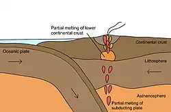 Bimodaler Vulkanismus wird normalerweise als Ergebnis einer partiellen Schmelze der Erdkruste erklärt, welches granitische Magmen schafft, während große Volumina relativ heißen basaltischen Magmas aus einer Quelle im Erdmantel eingelagert werden. Die beiden Magma-Typen bilden dann separate Magmakammern, die es periodisch beiden Lavatypen ermöglichen, ausgestoßen zu werden.[7][8]