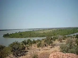 ![]() Der Gambia fließt hier im Bildausschnitt in westlicher Richtung. | ||