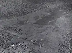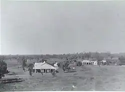 Östlich des Ortes am Rande des Flussbettes entstand ein Militärlager. Erster Nutzer war die Darwin Overland Maintenance Force (DOMF). Gegründet im September 1940 aus der Australian Imperial Force heraus und mit Hauptquartier in Alice Springs war es ihre Aufgabe, den Transport von Menschen und Material zwischen den beiden Endpunkten der Schienenstrecken zu übernehmen.[31][32][33] In der Folgezeit sollten etliche weitere militärische Einheiten aus Australien und den USA den Standort Birdum nutzen. So sind nach einer Postleitzahlenliste der amerikanischen Feldpost (APO) für Juni 1942 in Birdum an amerikanischen Truppen u. a. das Hauptquartier und der Stab des 148. Feldartillerieregimentes, das 394. Quartermaster-Bataillon (von Mai bis November 1942)[34] sowie das 135. US-Sanitätsregiment, beide ebenfalls mit ihrem Hauptquartier, verzeichnet. Letzteres errichtete im September 1942 das „Medical Regiment Evacuation Hospital“ für Personal und Patienten, die zuvor in Coomalie Creek nahe Batchelor untergebracht waren.[35] Diese Station erbrachte auch Unterstützungsleistungen für ein in unmittelbarer Nähe errichtetes australisches Feldlazarett, das 45. Australian Camp Hospital.[36][37]