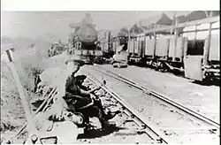 Einen erheblichen Aufschwung erlangte der Ort mit Beginn des Pazifikkriegs im Zweiten Weltkrieg. Bereits vor der Kriegserklärung Australiens an Japan im Dezember 1941 fanden massive Truppenverlagerungen an die australische Nordküste statt. Aufgrund der Befürchtung, japanische Truppen könnten dort eine Invasion versuchen, wurde die Stadt Darwin zwischen dem 16. Dezember 1941 und dem 15. Februar 1942 weitgehend evakuiert.[26] Stattdessen wurden dort 32.000 alliierte Soldaten samt Ausrüstung stationiert. Ein Großteil dieser Bewegungen lief über Birdum ab,[27] ebenso der Transport von Verwundeten und Flüchtlingen nach dem japanischen Luftangriff auf Darwin Ende Februar 1942.[28] Die Furcht, Transporte per Schiff über das Meer könnten versenkt werden, trug ebenfalls zur Zunahme des Verkehrs über Bahn und Straße bei. Die Zugfrequenz vervielfachte sich auf bis zu 147 Züge die Woche in Spitzenzeiten.[29] Die Australische Armee übernahm die Kontrolle über den Betrieb auf der Bahnstrecke und begann, sie so auszubauen, dass sie der exorbitant gestiegenen Belastung gerecht wurde.[30]