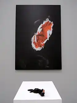 2010 entstand die erste Skulptur, ein liegender offener Kegel von vier Meter Länge und zwei Meter Durchmesser im „Eingangsbereich“. Die Höhe des Objektes könnte ein Hineingehen in die Skulptur ermöglichen. Der rote Samt im Inneren der Skulptur ist in Hunderte rosettenförmiger Falten gelegt und mit Spiegelscherben und kleinen Kristallen besetzt. Ein großer zerbrochener Spiegel im Inneren reflektiert den Kopf des jeweiligen Betrachters. Anschließend entstanden kleinere Skulpturen in der gleichen Technik. Auch bei den folgenden Leinwandarbeiten blieben Licht und Körper Schwerpunktthemen ihrer Arbeit. Der Samt wurde mit Kristallen und Spiegelscherben kombiniert, Skulpturen als auch Bilder wurden von angedeuteten Rippen und Adern durchzogen.[2] Die vorher noch mit den Skulpturen fest verbundenen Adern lösten sich in den folgenden Arbeiten vom Untergrund und wurden zu eigenständigen Elementen.