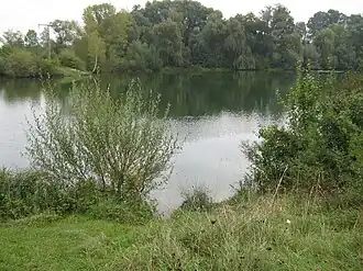 Vom Norden her nach Südosten reicht eine ca. 100 m lange Halbinsel in das Gewässer. Der See ist nur etwa 10 m vom Längenmühlbach entfernt, der im Süden vorbeifließt und der bereits um 1860 künstlich angelegt wurde. Nur wenige Meter weiter östlich liegt ein weiterer Baggersee mit einer Größe von rund 0,3 ha.