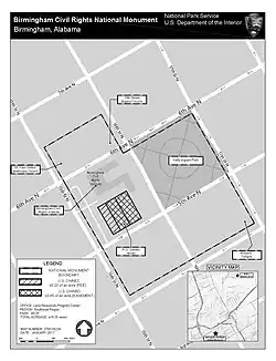 Das Monument wurde am 12. Januar 2017 von Präsident Barack Obama durch eine Presidential Proclamation mit einer Flächengröße von rund 7 ha ausgewiesen. Kern ist das ehemalige Gaston Motel und die 16th Street Baptist Church. Im Gaston Motel befand sich 1963 der Sitz der von Martin Luther King, Fred Shuttlesworth und Ralph Abernathy geführten Birmingham campaign der Southern Christian Leadership Conference gegen die extreme Rassentrennung in Birmingham. Bei Protesten im Mai 1963 wurden über tausend Personen verhaftet. In der 16th Street Baptist Church kam es am 15. September 1963 zu einem rassistisch motivierten Bombenanschlag, bei dem vier Mädchen ums Leben kamen.
