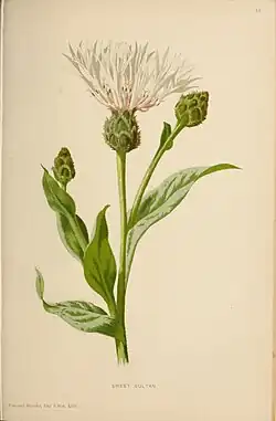 - Duftende Bisamblume (Amberboa moschata (L.) DC., Syn.: Centaurea moschata L., Centaurea imperialis hort.): Wildformen sind aus der Türkei und aus Armenien bekannt.[4] Sie wird seit dem 17. Jahrhundert als Zierpflanze kultiviert.