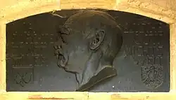 Über dem Eingang befindet sich eine Bronzeplatte mit einem nach rechts blickenden Porträt-Relief von Otto von Bismarck, links davon ein Wappen mit dem gekrönten Reichsadler und rechts des Reliefs wieder das Wappen der Familie von Bismarck. Die um diese Darstellung umlaufende Inschrift gibt eines der bekanntesten Bismarck-Zitate wieder: „WIR DEUTSCHE FÜRCHTEN GOTT SONST NICHTS IN DER WELT Don A. v. Keudell“. Die Bronzeplatte wurde von Bildhauer Ernst Wenck aus Berlin geschaffen.