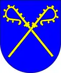 Ein bischöfliches Wappen ist erstmals unter Bischof Albrecht von Sternberg (Bischof 1356–1363) nachweisbar: ein quer geteilter Schild mit zwei in Form eines Andreaskreuzes darüber gelegten Bischofsstäben.[7] Die älteste Abbildung dieses bischöflichen Wappens in Farben auf einem Denkmal im Schweriner Dom von 1570 zeigt die untere Hälfte des Schildes golden, die obere rot, und darüber liegen die beiden blauen (wohl richtiger silbernen) Bischofsstäbe mit goldenen Krümmen.