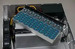 Um einen verteilten Zeitstempel-Server in einem Peer-to-Peer-Netzwerk zu bilden, verwendet Bitcoin ein Proof-of-Work-System.[2] Diese Arbeit wird oft als Bitcoin-Mining bezeichnet.