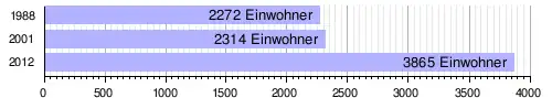 Im Hauptort lebten bei der Volkszählung 2012 3865 Einwohner in 308 Haushalten,[2] bei der Volkszählung 2001 2314 in 353 Haushalten[7] und bei der Volkszählung 1988 2272 in 341 Haushalten.[8]