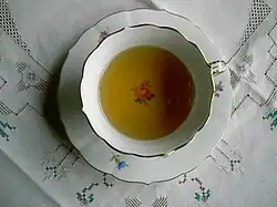Die umgangssprachlich übliche Deutung führt das Wort auf Kaffee zurück, der so dünn aufgebrüht ist, dass man durch den Kaffee hindurch das Blümchen auf dem Grund der Tasse sehen kann. Besonders im obersächsischen Raum findet sich dafür Anlass in dem verwendeten Dekor Gestreute Blümchen der Meißener Porzellanmanufaktur. Das Motiv entstand um 1815 und war in der Biedermeierzeit besonders beliebt. Auf dem Porzellanservice sind rund um eine leicht vergrößerte Mittelblume verschiedene Blumenarten angeordnet, beispielsweise Rosen, Vergissmeinnicht, Kornblumen oder Veilchen, die der Porzellanmaler nach dem Zufallsprinzip aus drei Dutzend Motiven auswählt. Auf dem Boden der Kaffeetasse ist eine einzelne Blume in Unterglasurmalerei aufgebracht.[1]