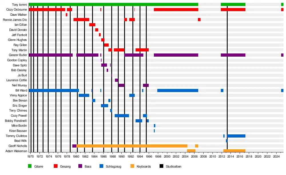 | Ozzy Osbourne (bis 1977, 1978–1979, 1997–2017, 2025; † 2025) | |