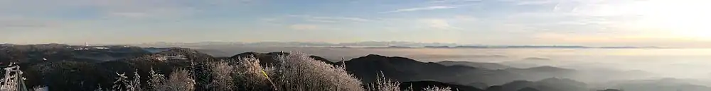 Der Hochblauen bietet Aussichtspunkte mit Blick auf den Schwarzwald mit der kahlen Kuppe des Belchen, auf die Vogesen mit dem Großen Belchen, den Schweizer Jura und die Alpen.