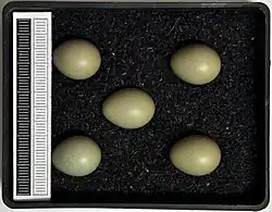 Das Gelege besteht aus 4–7, meist 5 oder 6 Eiern. Diese sind dunkel olivgrün, glänzend und meist einfarbig, seltener gewölkt oder rostbraun gesprenkelt. Die Maße liegen etwa bei 19 × 14 mm. Die Bebrütung dauert etwa zwei Wochen (bei svecica bis zu zwei Tage kürzer) und erfolgt durch das Weibchen. Sie beginnt nach Ablage des letzten Eis (bei svecica auch eher).