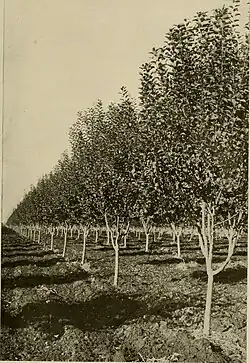 In den USA wurde gegen Ende des 19. Jahrhunderts das arsenhaltige Pariser Grün gegen Kartoffelkäfer eingesetzt. Für die chemische Bekämpfung des Schwammspinners erwies sich Pariser Grün als ungeeignet, bei Versuchen in den 1890er Jahren zeigte Bleiarsenat eine bessere Wirkung gegen den Schwammspinner.[6] Die erstmalige Anwendung von Bleiarsenat zur Insektenbekämpfung wird C. H. Fernald, einem Mitarbeiter der Division of Entomology des US-Landwirtschaftsministeriums, zugeschrieben.[7] Da Bleiarsenat länger auf den Blättern haften blieb und besser pflanzenverträglich war als Pariser Grün, verdrängte es dieses auch von der Anwendung im Kartoffelanbau.[6] Im Obstbau wurde Bleiarsenat gegen den Apfelwickler eingesetzt.