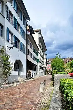 Das markante Bürgerhaus wurde im 13. Jahrhundert als Vorwerk der Burg Rapperswil erbaut, mit der sie auch heute noch durch einen unterirdischen Gang verbunden ist. Im Verlauf des 15./16. Jahrhunderts erfolgte eine Umgestaltung und Anpassung des äusseren Erscheinungsbild an die Wohnbauten der Hintergasse.