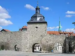 Einst soll die Stadt Mühlhausen schwer von dem Hessenvolke bedrängt und belagert worden sein. Schon waren die meisten Vertheidiger der Stadt gefangen, todt oder verwundet und der nächste Sturm mußte die Belagerer in den Besitz derselben bringen. Da gab die Noth den Mühlhäusern einen klugen Gedanken ein. Im Dunkel der Nacht wurden die Mauern der Stadt mit hölzernen Pfählen oder Pflöcken bewehrt und die Pflöcke gleich lebendigen Söldnern geschmückt und gerüstet. Aber zwischen diesen hölzernen Soldaten bewegten sich hin und wieder lebendige Krieger und drohten spottend hinab in das Lager der Feinde. Als nun bei anbrechendem Morgen die staunenden Hessen die neuen Rüstungen und die zahlreichen Streiter und Vertheidiger der Mauern gewahrten, da verzweifelten sie an ihrem Siege und zogen kleinmüthig von dannen. Davon sollen sie den Namen der dummen oder blinden Hessen bekommen haben.“
