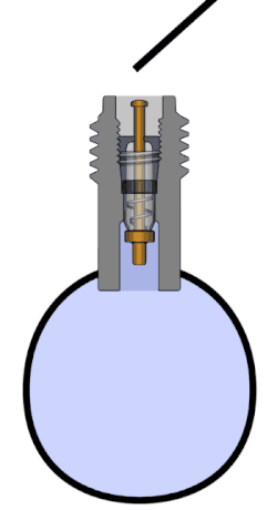 Auch beim Blitzventil klebt das Sperrelement des Ventileinsatzes gelegentlich im Ventilsitz fest und muss durch den Aufbau eines besonders hohen Drucks freigeblasen werden.