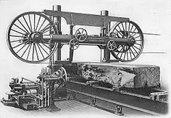 2 Räder, 1 Treibrad und ein Umlenkrad werden von einem an der Säge angebrachten Elektromotor oder Verbrennungsmotor angetrieben. Der leichte Konstruktionstyp eignet sich dazu, die Säge übers Schnittgut zu führen und nicht, wie bei der Gattersäge, das schwere Schnittgut durch die stehende Säge. Der einfache Maschinenbau eignet sich im Speziellen für DIY-Projekte und ist daher in ländlichen Gebieten sehr beliebt[2].