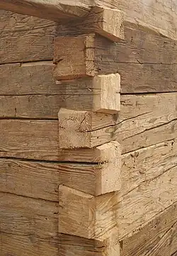Der Blockbau galt seit jeher als eine der ursprünglichsten Bauweisen der westlichen Kulturkreise; Vitruv (II,1,4) beispielsweise subsumiert die kolchische Blockbautradition – gemeint ist die antike Region Paphlagonien in der heutigen Türkei – unter die „Anfänge“ des Hausbaus, die bei den „auswärtigen Völkerschaften“ zu seiner Zeit noch tradiert wurden. Tatsächlich gibt es inzwischen viele Belege dafür, dass die Blockbautechnik bereits in prähistorischer Zeit eine gängige Bauweise vor allem in Mitteleuropa war. Sie kam seit dem Neolithikum beim Brunnenbau,[2] ab dem 2. Jahrtausend v. Chr. auch beim Hausbau zum Einsatz, eine wichtige Fundstätte hierfür ist das schweizerische Savognin Padnal.[3] In der Eisenzeit wurde die Bauweise auch für Hügelgrabkammern verwendet, bedeutende Beispiele hierfür sind die Tumuli von Gordion oder die skythischen Fürstengräber[4] im russischen Altai-Gebirge. In römischer Zeit finden sich Hinweise auf Befestigungsanlagen und Wachtürme in Blockbauweise, Vitruv II, 9, 59 beschreibt einen entsprechenden Turm im Zusammenhang mit der Einnahme der Stadt Larignum durch Julius Caesar. Im Hausbau dürfte die Bauweise bis heute kontinuierlich verwendet worden sein, auch wenn die ältesten noch stehenden Blockhäuser erst aus dem Mittelalter stammen.