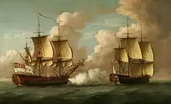 ![]() Die Brune (links) 1762 unter britischer Flagge.
