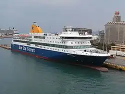 - ↑ Ξεκίνησε η ρυμούλκηση του BLUE STAR PATMOS. 8. September 2017, abgerufen am 24. Juli 2025 (griechisch).