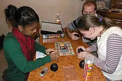 - reroll – man legt mindestens einen Würfel raus und würfelt die restlichen noch mal, nachdem man den Tipp abgegeben hat;