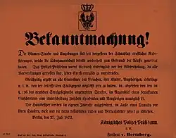 Die Nachricht von den Kämpfen hatte inzwischen auch den Kaiser erreicht. Wilhelm I. hielt sich wie im Juli üblich nicht in der Hauptstadt, sondern in einem Kurort auf. Er ermahnte von Wiesbaden aus den Berliner Polizeipräsidenten dazu, den „Exzessen, falls sie fortgesetzt werden sollten, mit Ernst und Nachdruck [zu] begegnen[n]“. Er erinnerte diesbezüglich an die Situation kurz vor der Märzrevolution 1848 in Berlin. Damals hatte sich Wilhelm für ein hartes Vorgehen des Militärs gegen die Demonstrierenden ausgesprochen.[49]