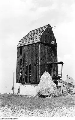 Die im 19. Jahrhundert gebaute hölzerne Mühle steht am westlichen Ortsausgang des Dorfes. Heute ist der Bock der Mühle umbaut, die Flügel sind entfernt. Die Bausubstanz der Mühle war in der Zeit der DDR bereits deutlich angegriffen, wurde dann aber saniert.