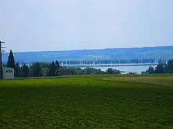 Alternativ führt nach dem Überqueren der östlich gelegenen Straßenbrücke zum Festland ein Weg ufernah zum Fluss Leiblach. Von dort geht es zur landeinwärts gelegenen Brücke des Straßengrenzübergangs nach Österreich.
