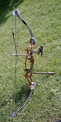 Der Compoundbogen besitzt an den Bogenenden des Bogens drehbare Räder, die sogenannten Camwheels, kurz Cams genannt. Sie besitzen zwei verschiedene Durchmesser, auf denen Kabel oder Sehne aufgerollt sind. Im ungespannten Zustand ist auf dem größeren der beiden Räder die Sehne aufgerollt. Beim Spannen des Bogens wird die Sehne vom großen Rad abgerollt und auf dem kleinen Rad wird das am gegenüberliegenden Wurfarm befestigte Kabel aufgerollt. Die Cams sind zusätzlich exzentrisch aufgehängt.